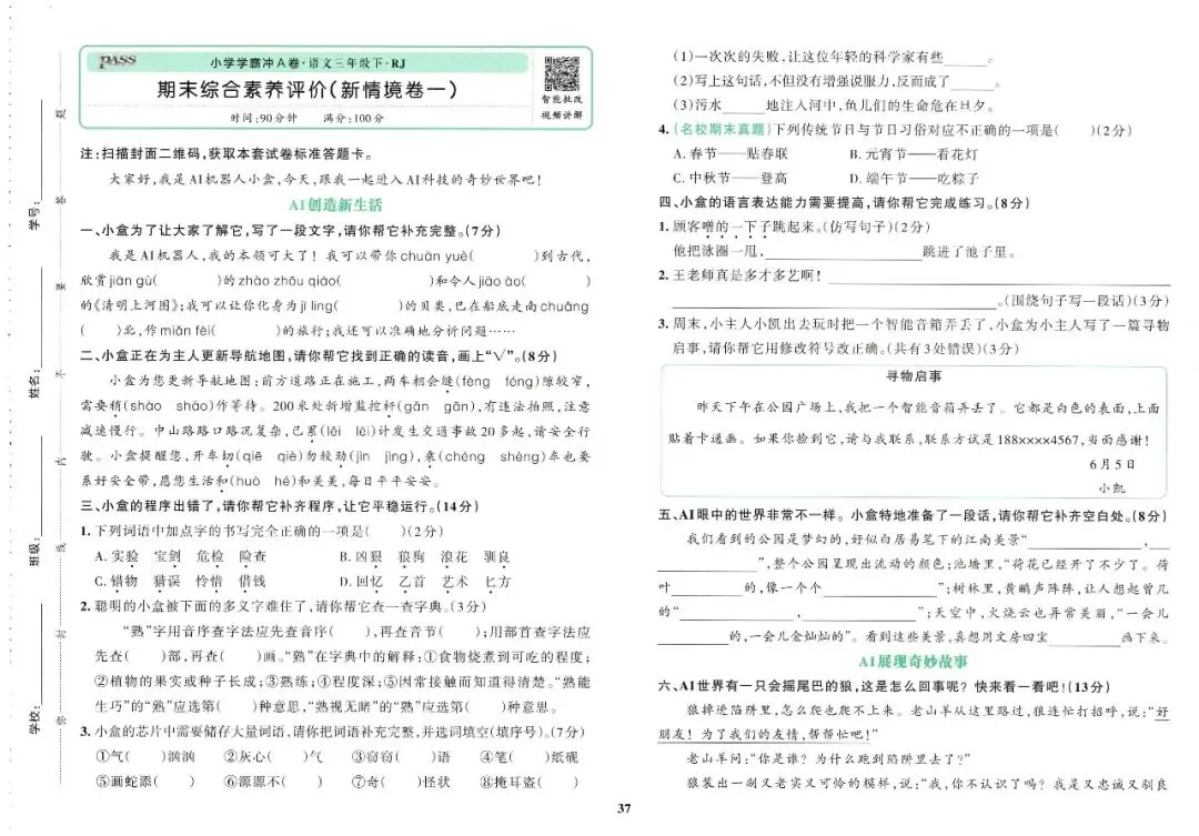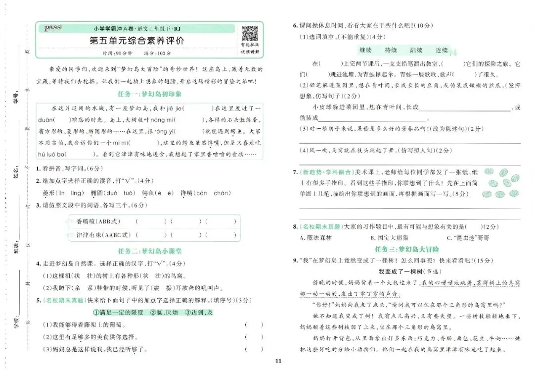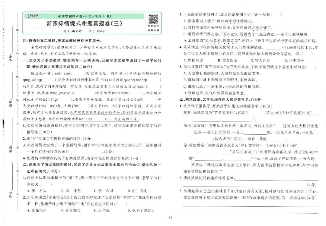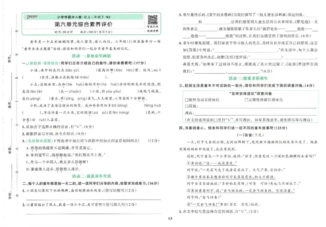 大家好,今天刘老师给大家整理了三下语文《小学学霸冲A卷》。各位家长或者老师可以下载下来,打印给孩子!【建议老师转发到班级群】