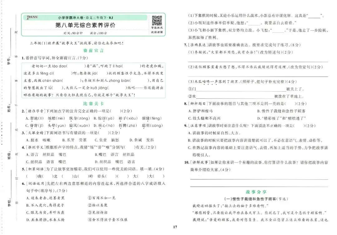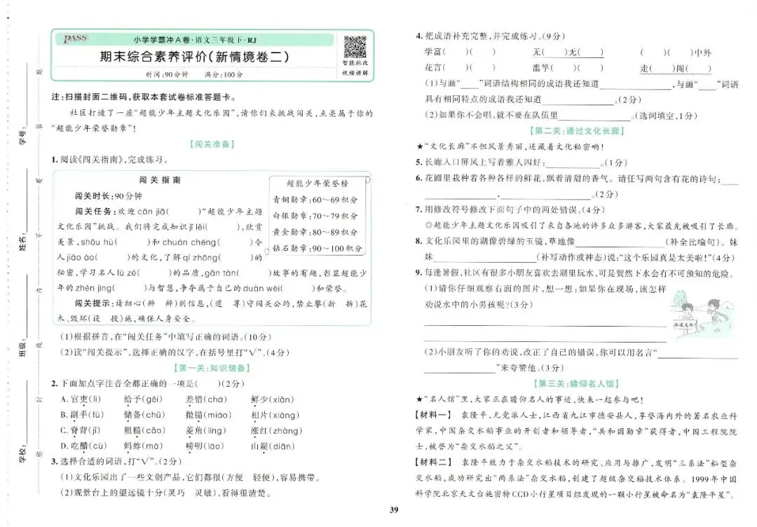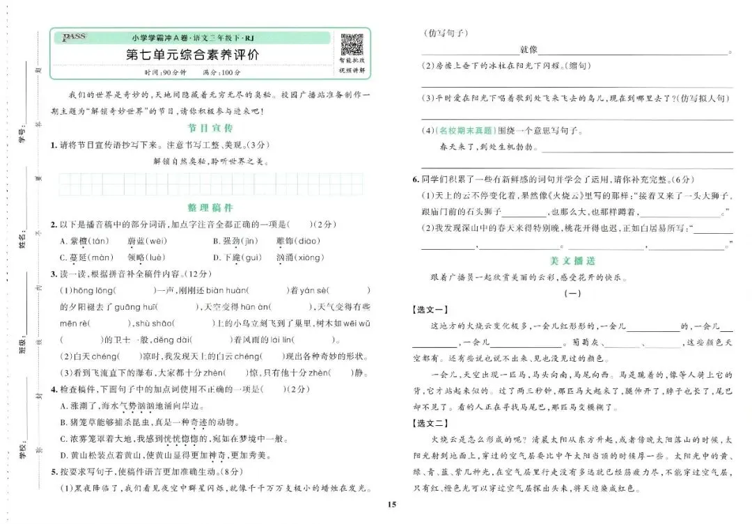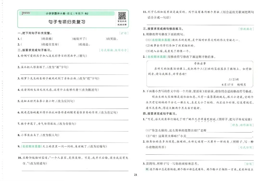 大家好,今天刘老师给大家整理了三下语文《小学学霸冲A卷》。各位家长或者老师可以下载下来,打印给孩子!【建议老师转发到班级群】