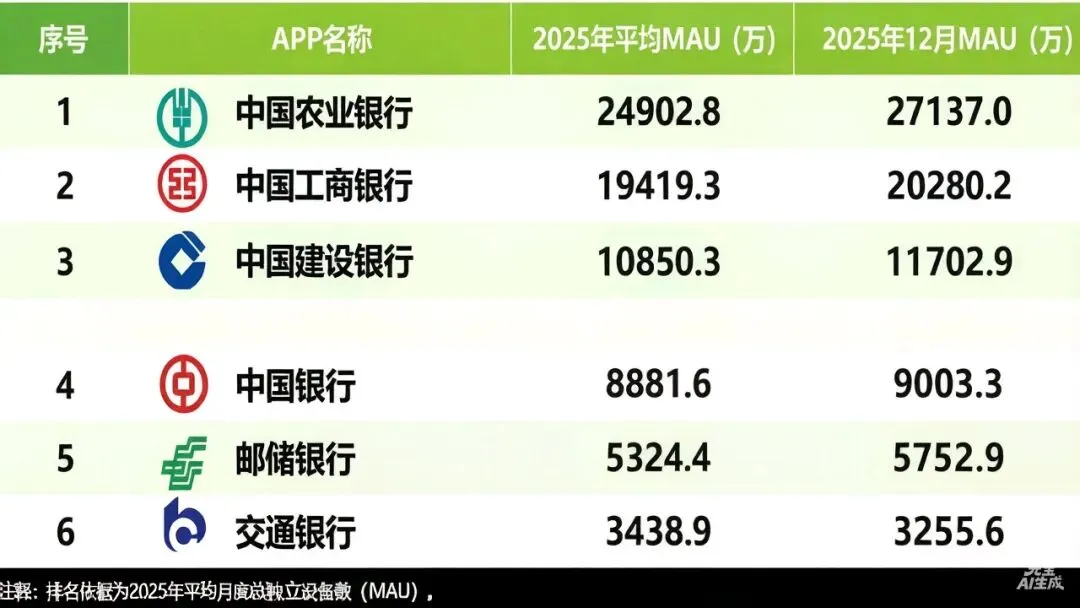 全银行手机银行APP活跃度排名(国有、股份、城商、农信)