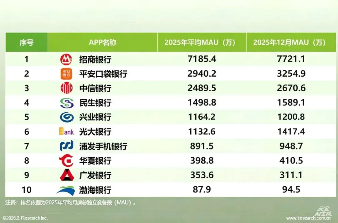 根据艾瑞咨询的监测数据,2023年—2025年,我国手机银行APP月度总独立设备数在6.48亿—7.39亿台区间内波动上行,并在2025年12月达到阶段高点。