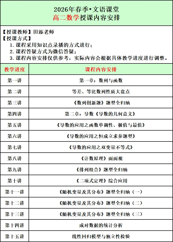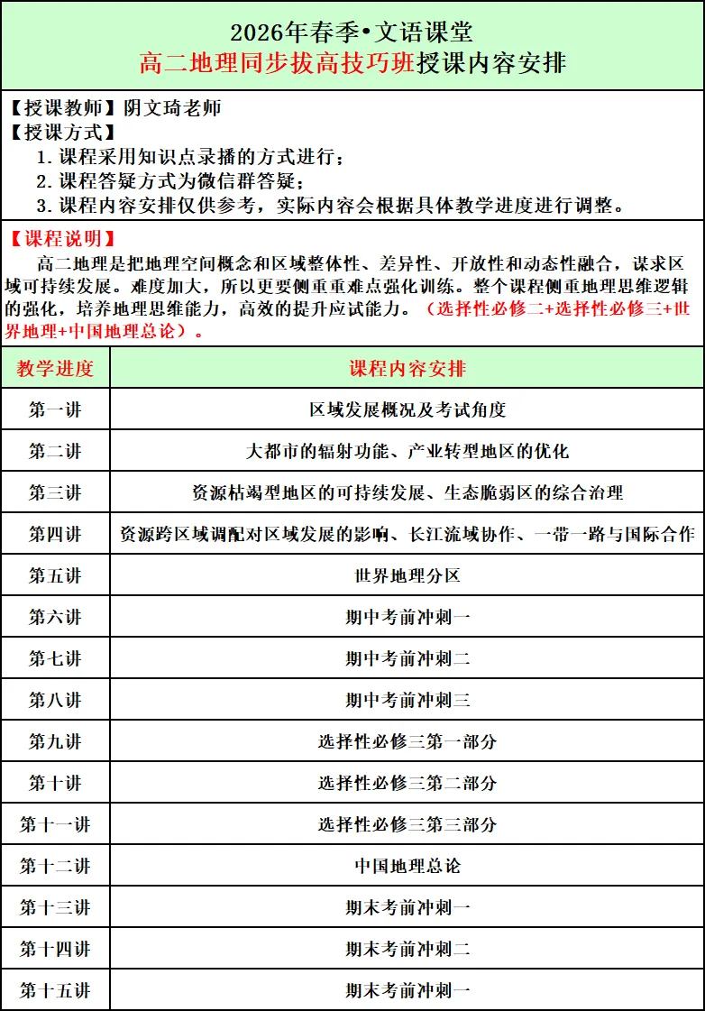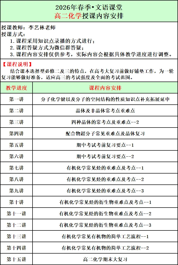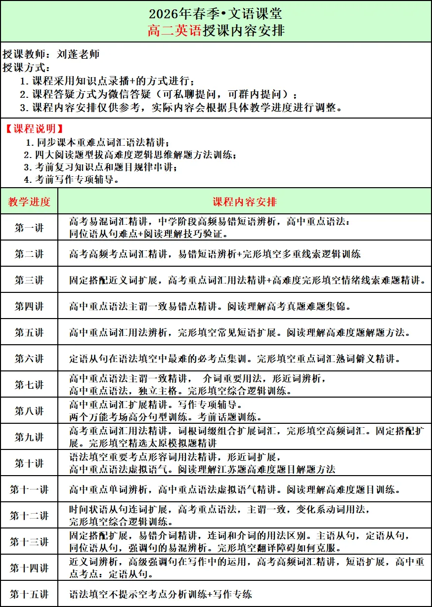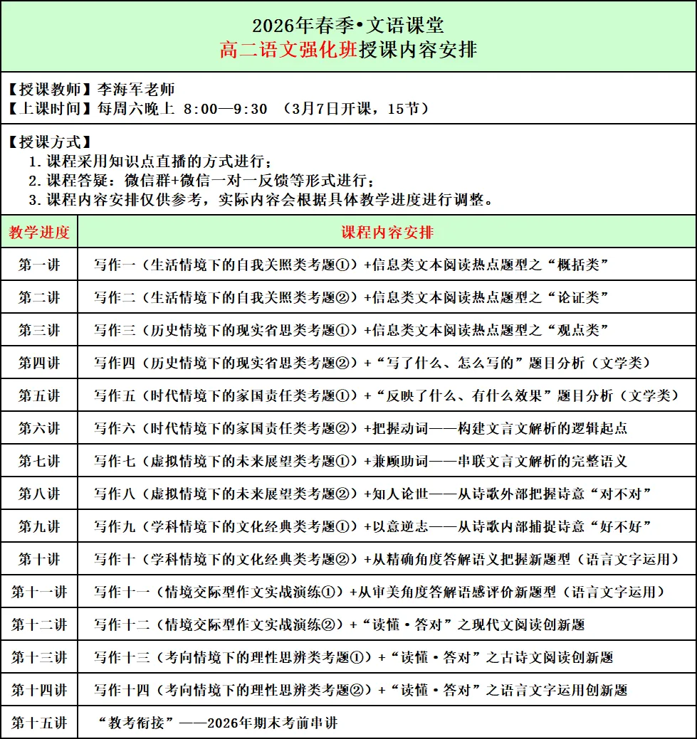 2026年春季文语课堂高一课程报名说明