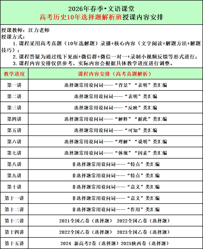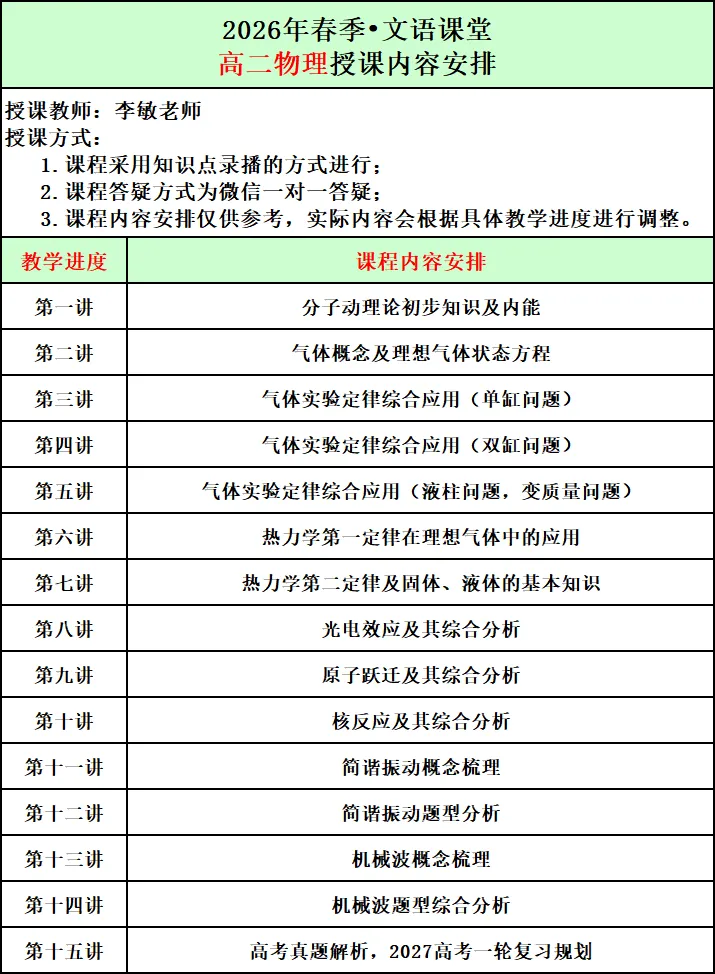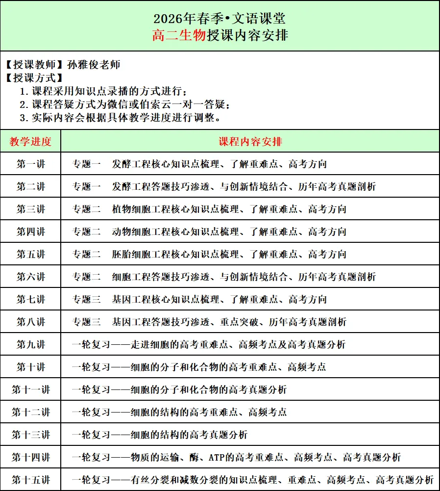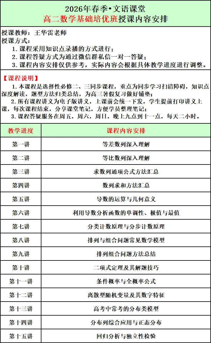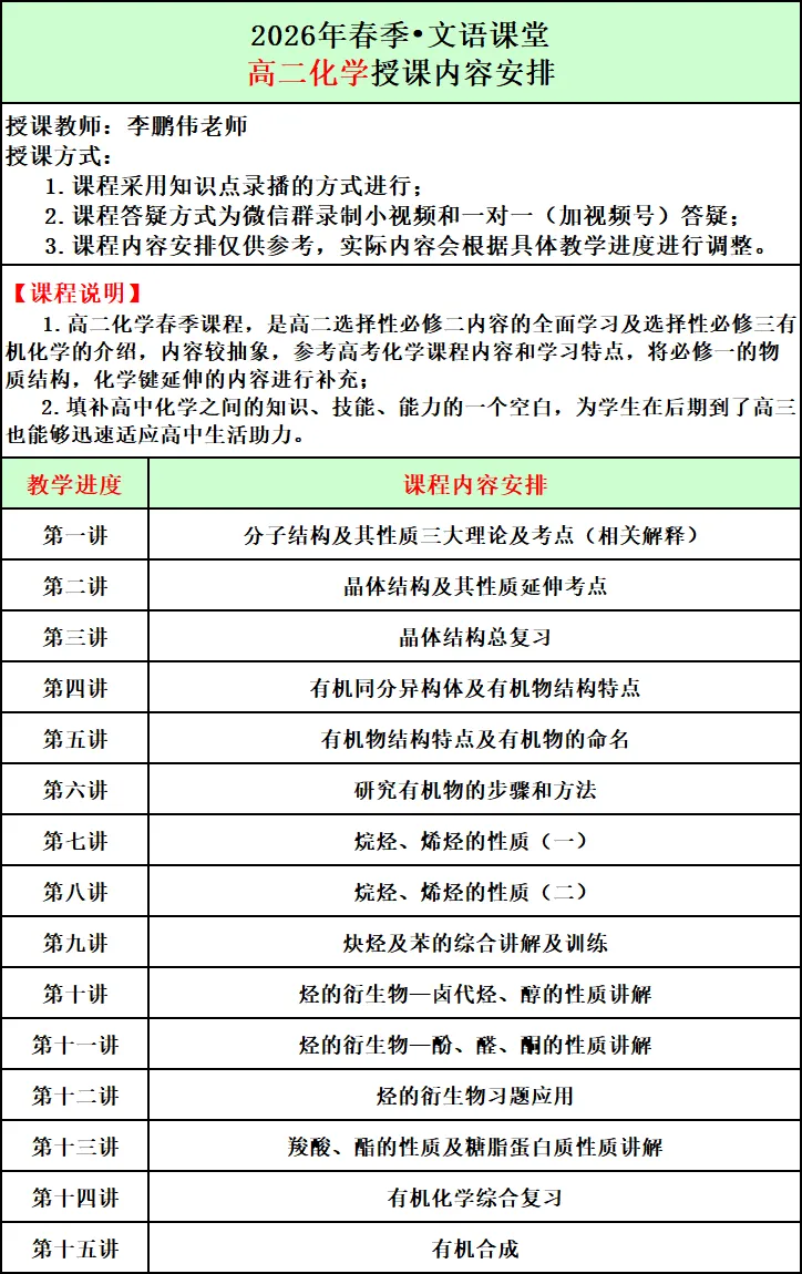 2026年春季文语课堂高一课程报名说明
