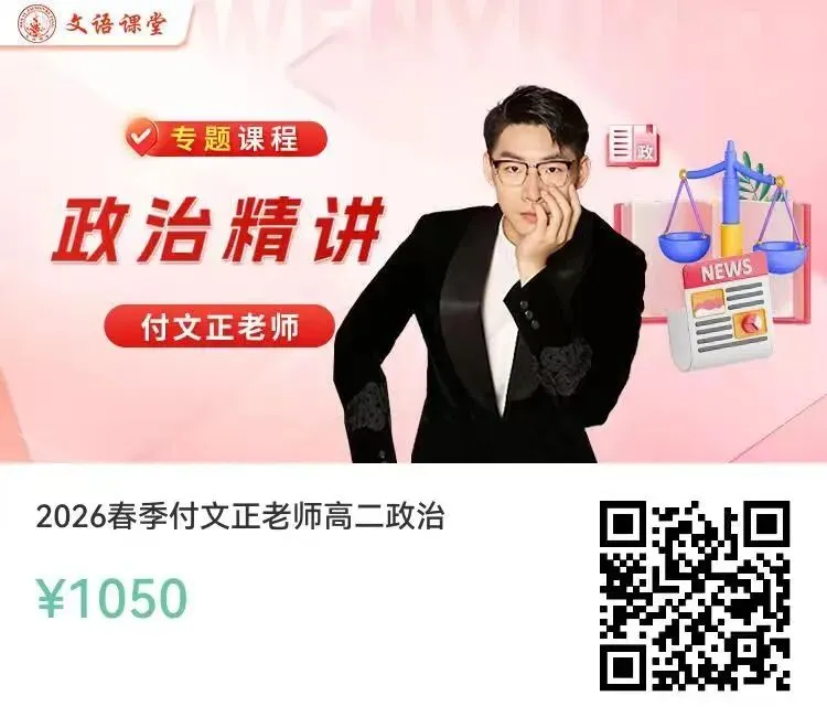 政治老师付文正,学员遍布全国,涵盖初中生、高中生及各地一线政治教师,教龄14年。常年奋战在初三教学与阅卷一线,对教材与考题研究透彻,坚持实时更新时政教学内容。