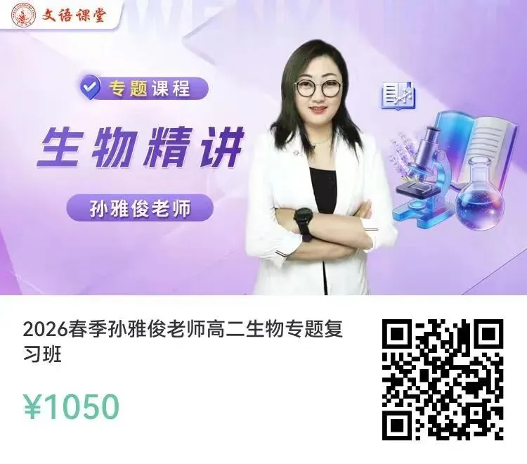 生物老师孙雅俊,原新东方生物教研组组长,教龄14年。深耕生物教学一线,专注考情研究,对考试方向与命题规律把握精准。