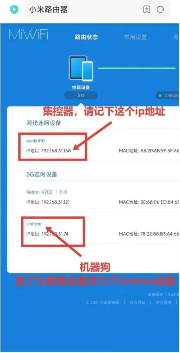 1、机器狗配网完成后,进入路由器后台验证所有机器狗是否正确加入路由器