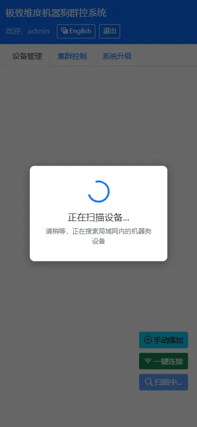 3、集控后台能正确扫描到机器狗,但是无法连接