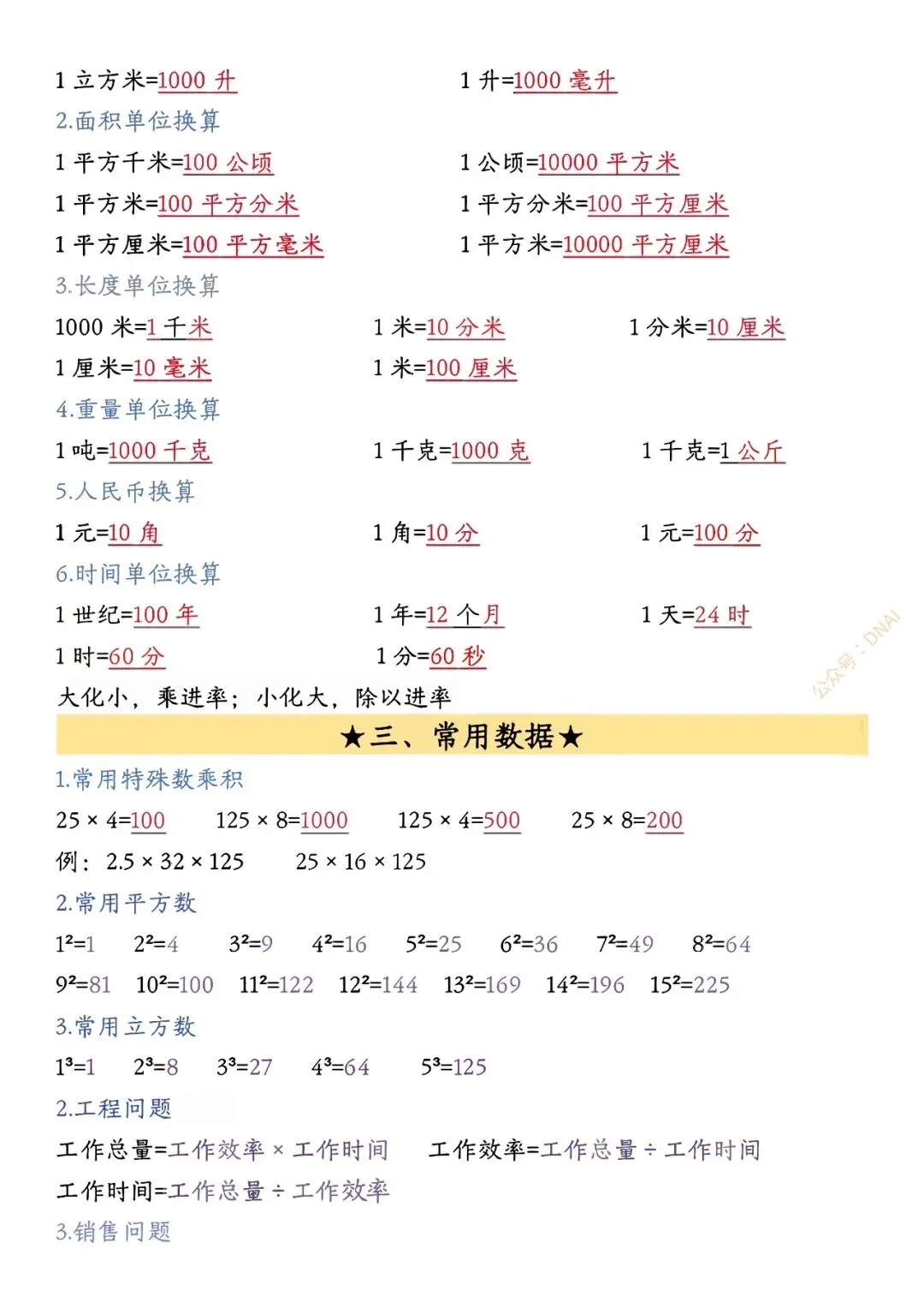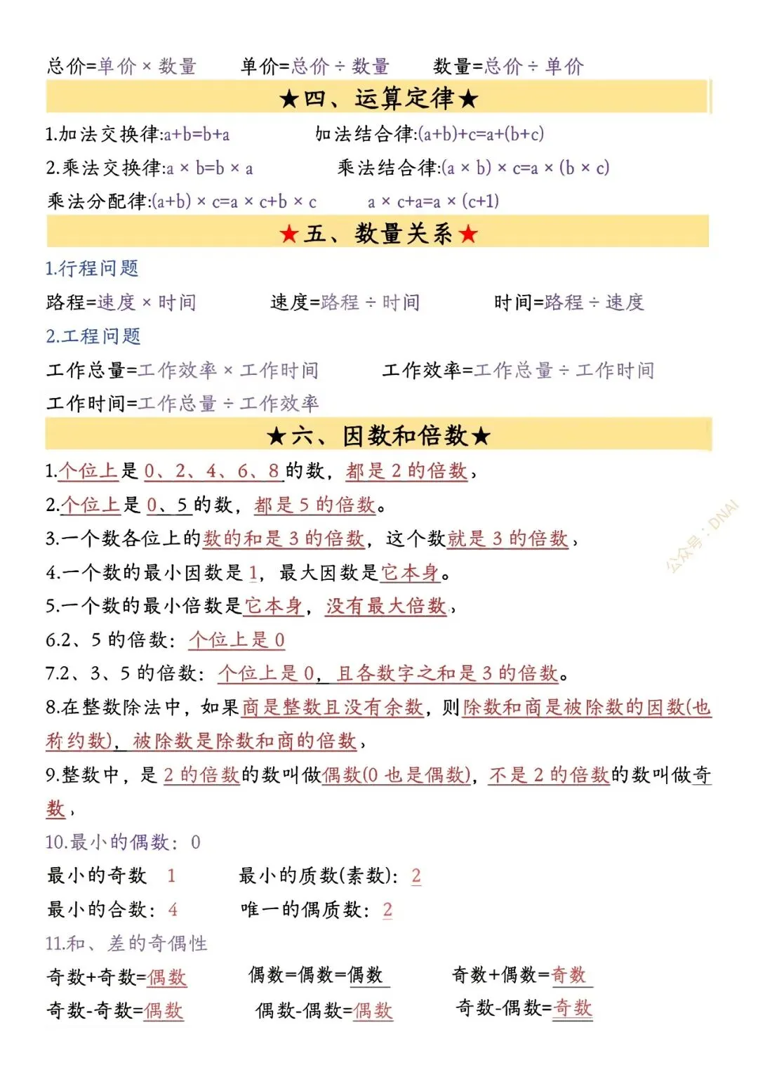 五年级数学下册必背公式总结【可打印】