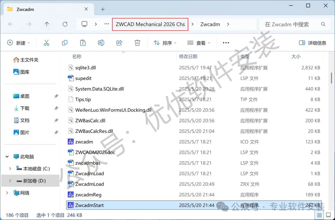10、点击路径上的【ZWCAD Mechanical 2026 Chs】