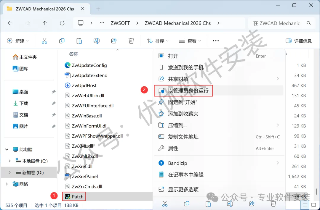 3、找到【ZWCAD_Mechanical_2026】应用程序,右键选择【以管理员身份运行】它