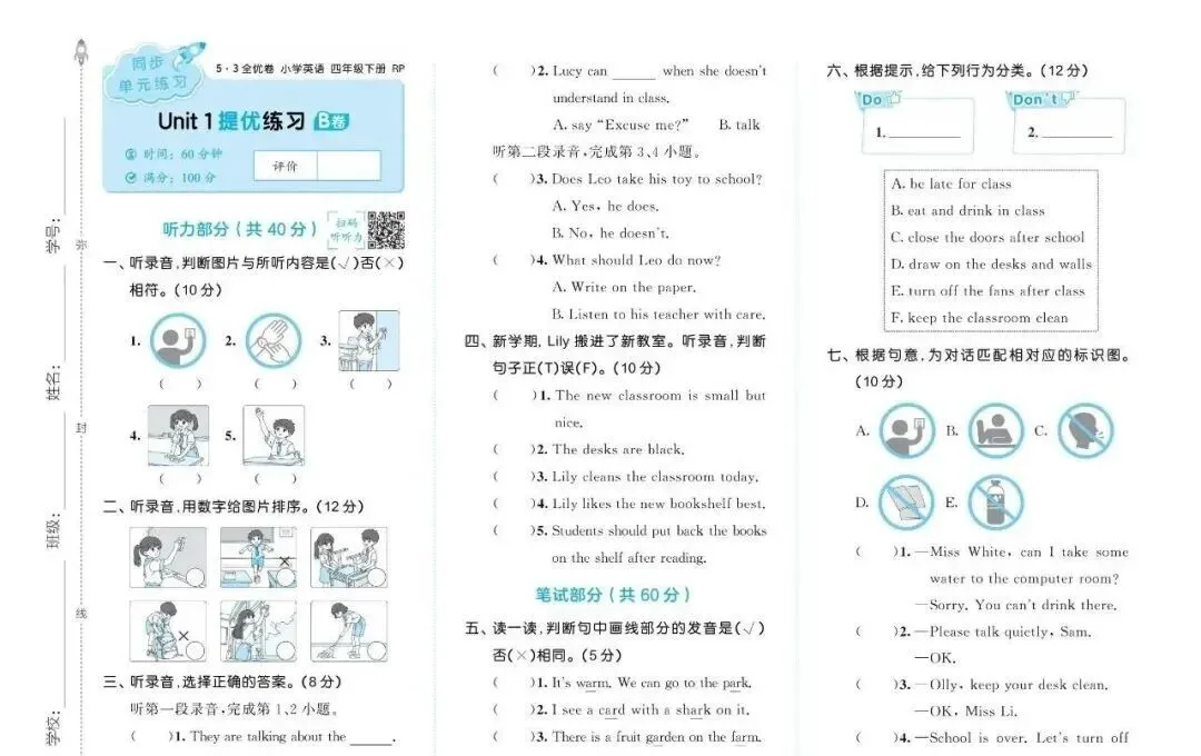 2026春人教PEP版英语《53全优卷》试卷含答案 三四五六年级下册 可打印