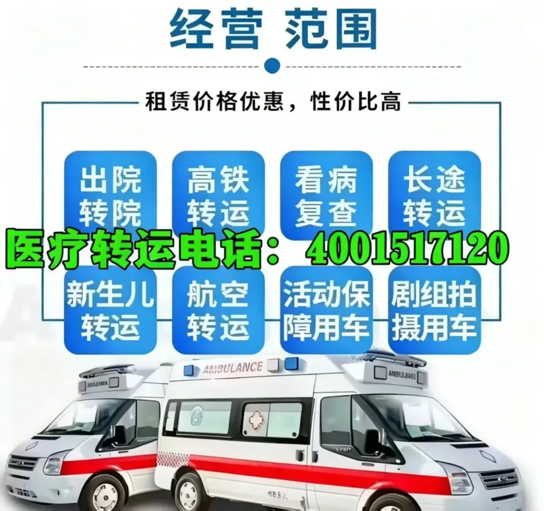 合规120救护车出租转运机构,安全第一、专业至上!专业设备、资深团队、透明收费、贴心服务,为患者架起温暖生命桥梁。市内接送、跨省转院、担架护送,我们24h待命,随叫随到!