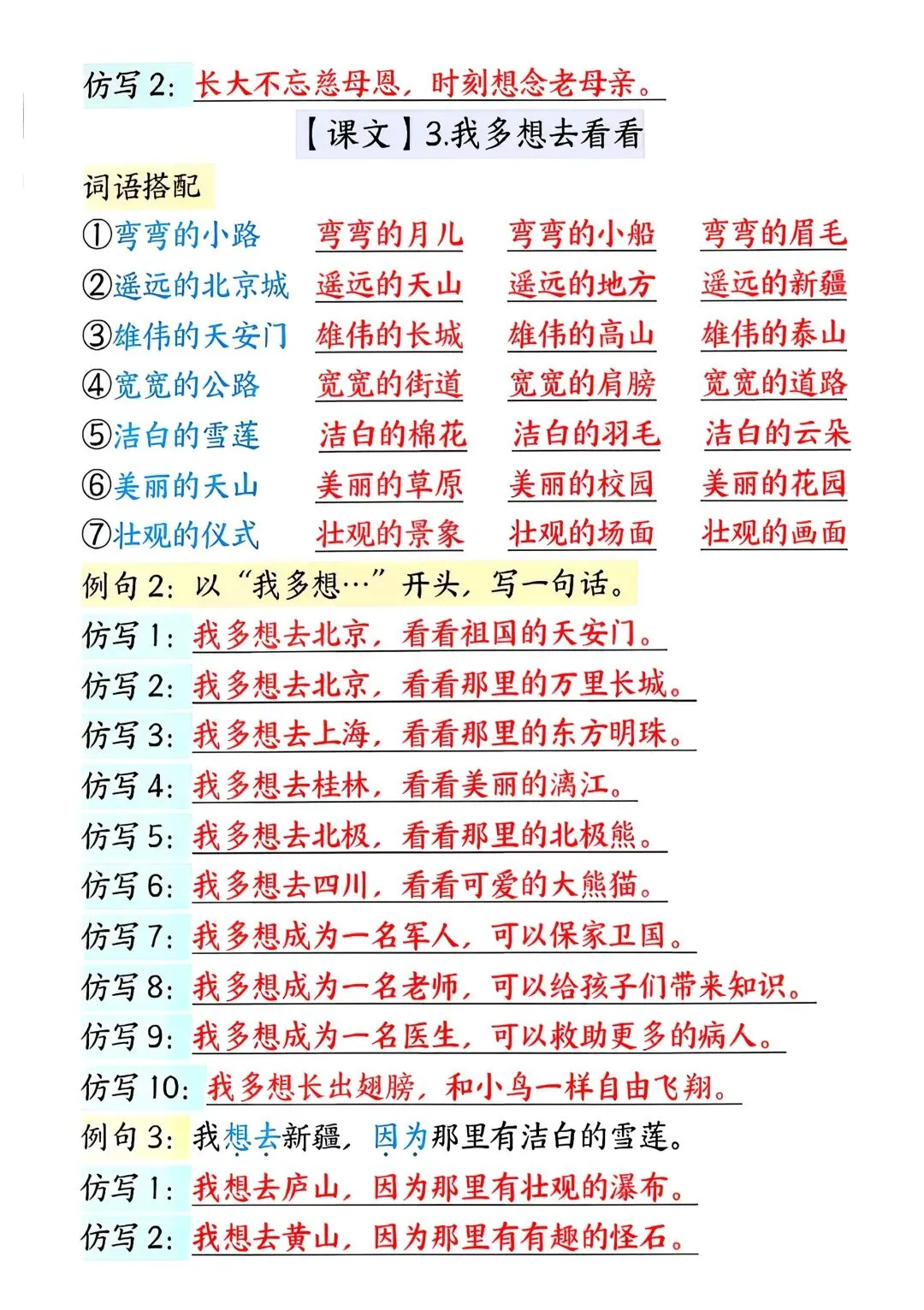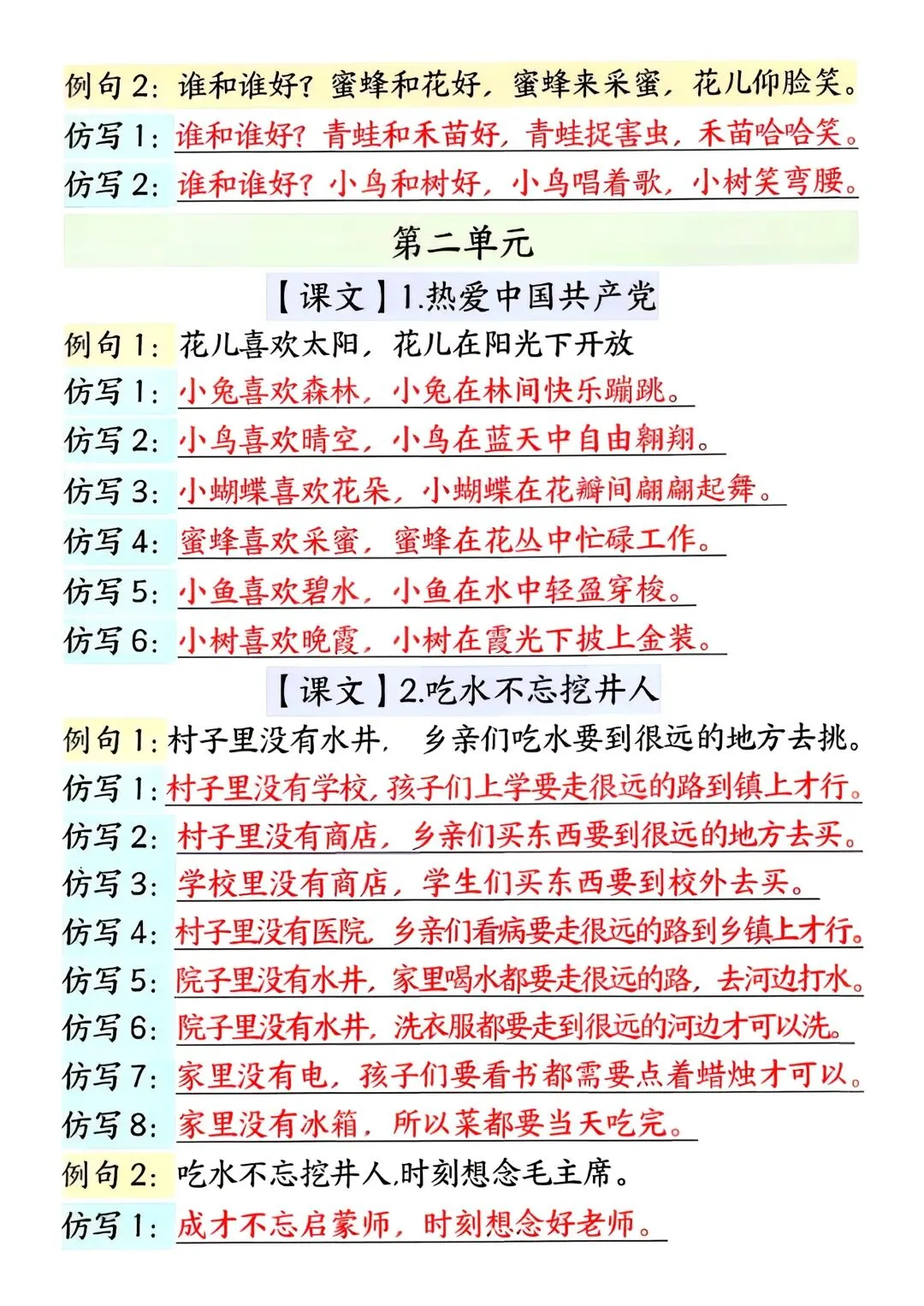 为了方便大家辅导,我特意整理了完整版可打印仿写练习资料,内容更全面、题型更丰富,还附带参考答案,家长不用费心思考,直接打印就能用。