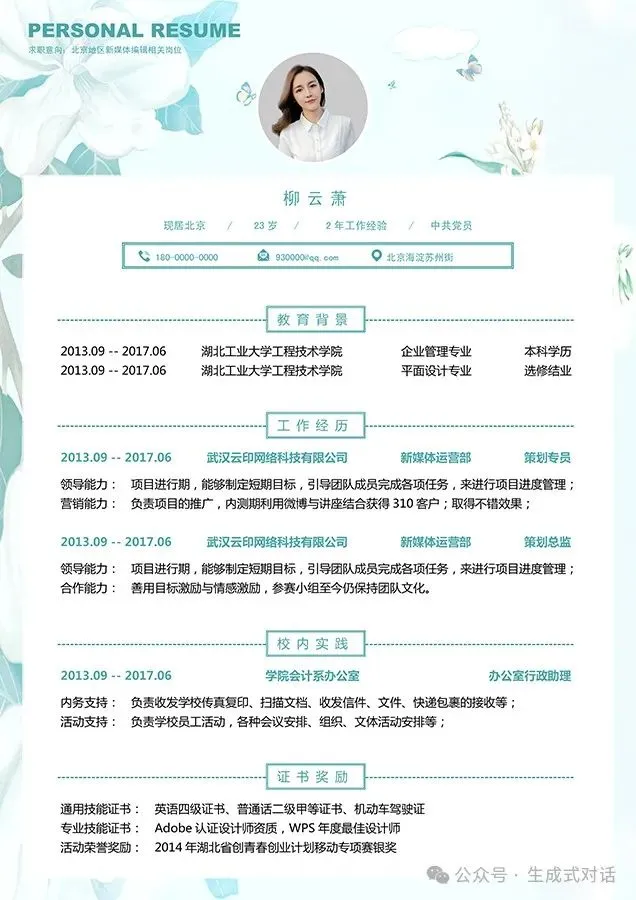 文章底部附下载链接也可直接后台回复【简历】免费获取哦!!!