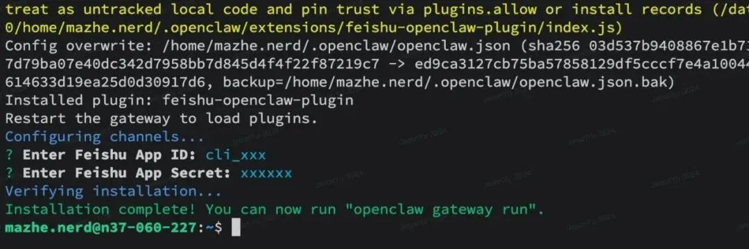 /feishu start:确认是否安装成功 -