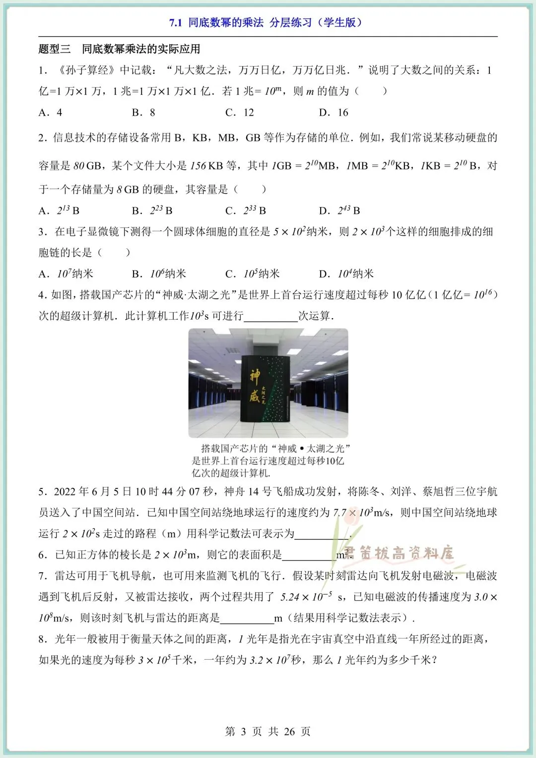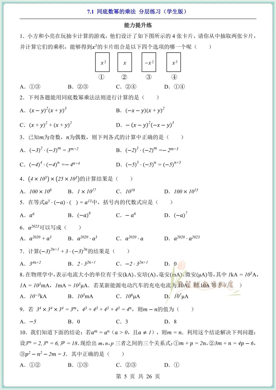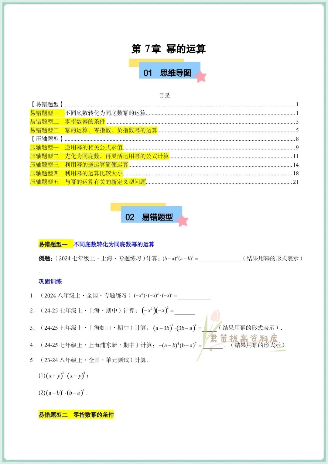 新版教材|2026新(苏科版)七年级下册数学一课一练(同步练习)+单元测试卷+易错题+压轴题,附答案,可打印!