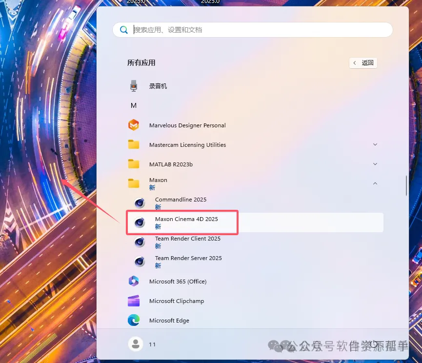 9、开始菜单找到Cinema 4D 2025程序,拖动到桌面快捷方式。