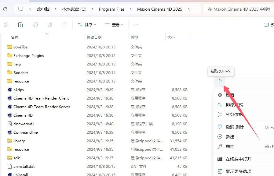 1、使用网盘下载Cinema 4D 2025软件安装包,下载到电脑后使用解压软件解压。