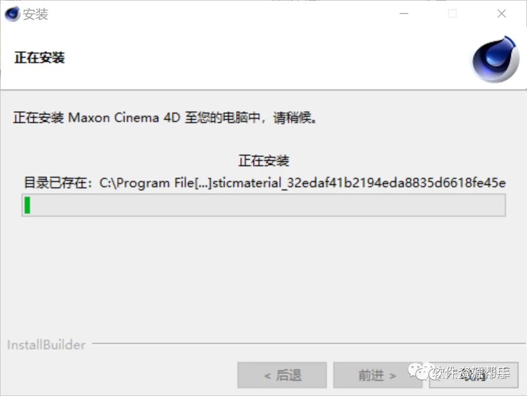 4.选择安装路径,默认安装在C盘,也可以手动更改安装路径(注意:手动更改安装路径不要出现中文字符,记住自己的安装路径,后面需要用到)然后点击【前进】。