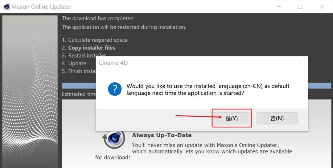 18.提示后续是否将中文设置成默认语言,点击【是】