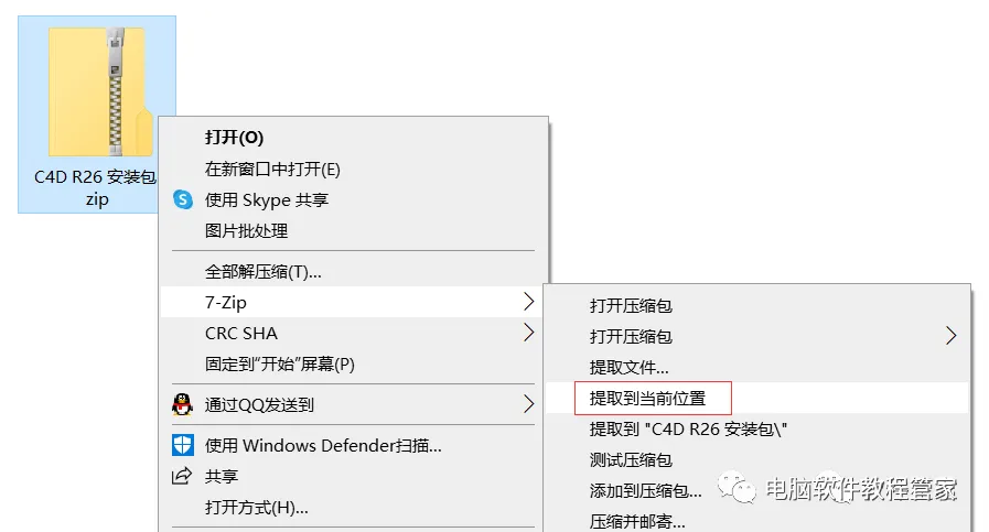 1.找到下载好的安装包,并将其解压到当前位置
