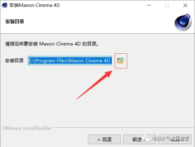 5.点击下图红框内图标,修改安装位置。(注意:要提前在D盘,新建一个文件夹,并命名为【C4D R26】)