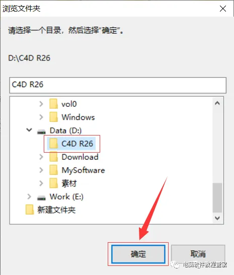 6.选择新建的文件夹【C4D R26】,然后点击【确定】
