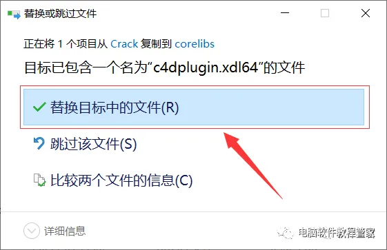 15.在弹出的窗口中选择【替换目标中的文件】