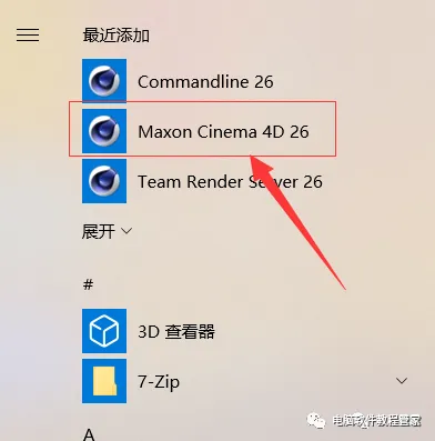 16.打开开始菜单,点击【Maxon Cinema 4D 26】,启动软件