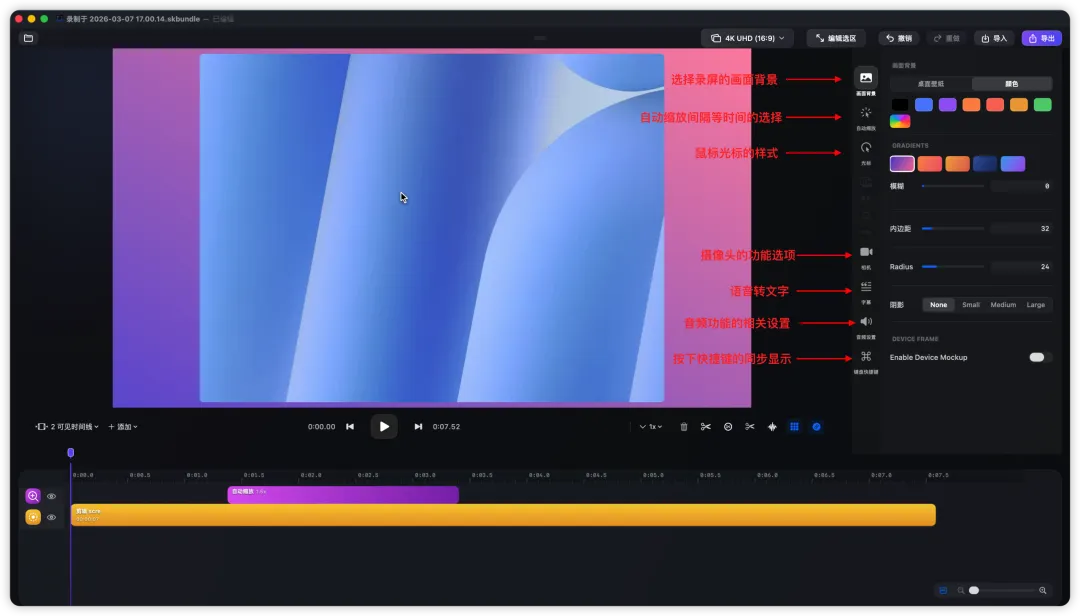 一般到了这个时候就像电视剧里面的主角就要登场了,一款免费平替的软件横空出场。它基本上能做到Screen Studio 九成的功能,可以说是很强大,它就是ScreenKite。虽然是个免费项目,不过未开源。