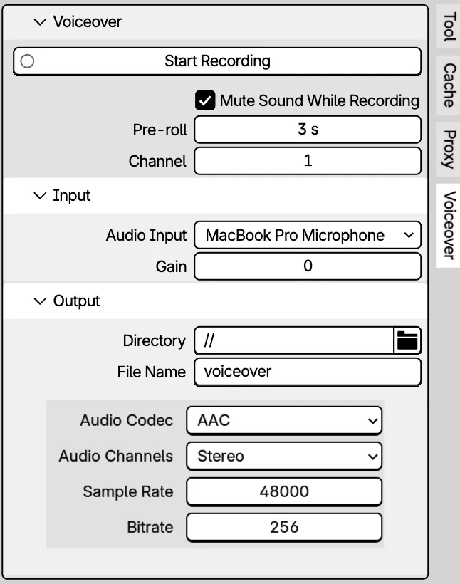 官方没有把录音按钮硬塞进本来就拥挤的顶部菜单,而是把它放在了侧边栏(N面板)。平时不用的时候它就安静地隐藏着,只有配音时才打开,完全不干扰你正常的剪辑工作。