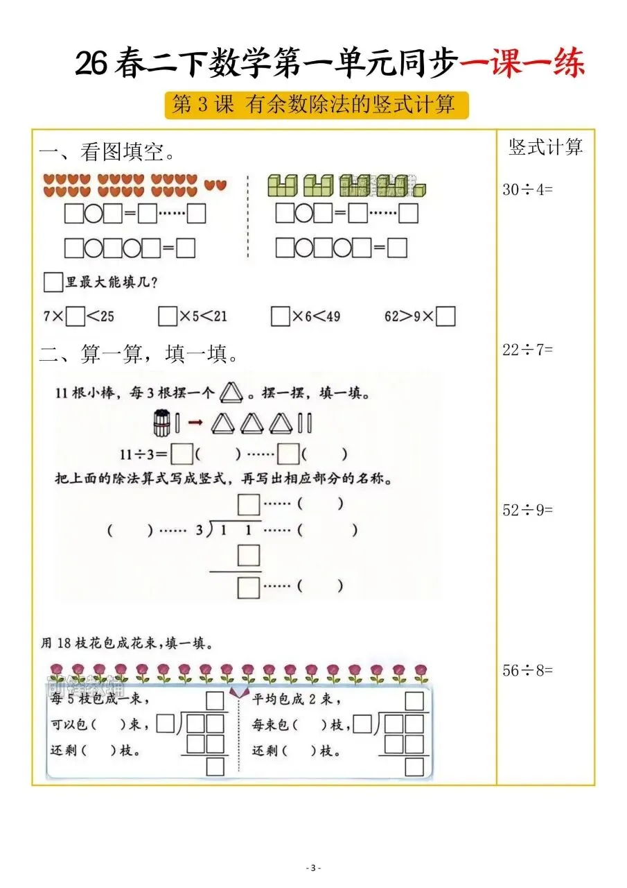 3️⃣有余数除法的竖式计算