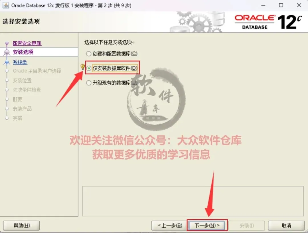 11.选择仅安装数据库软件,点击下一步;