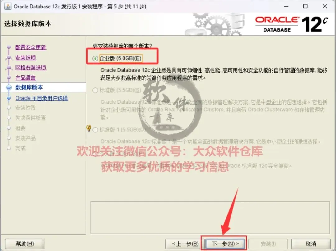 14.数据库版本选择企业版,然后点击下一步。