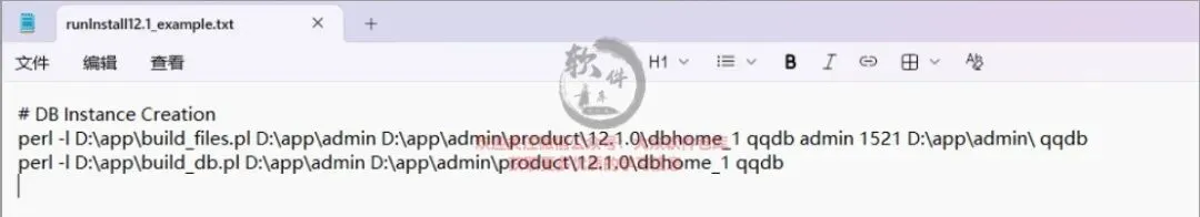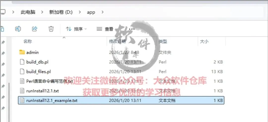 29.将复制的文件粘贴到我们数据库安装盘下(D/app),记事本格式打开”Perl语言命令编写范例”。