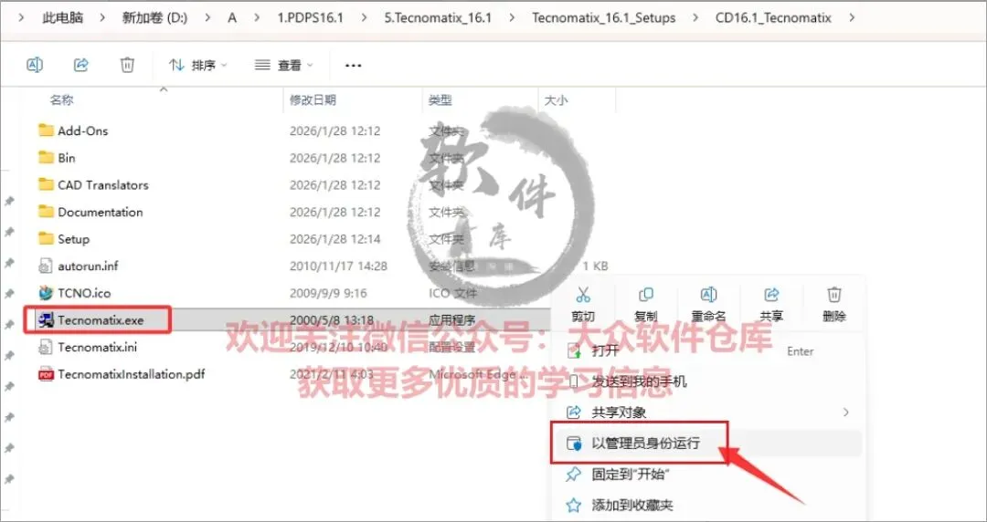 38.返回安装包,依次打开5.Tecnomatix_16.1\CD16.1_Tecnomatix文件夹,管理员身份运行Tecnomatix.exe程序;