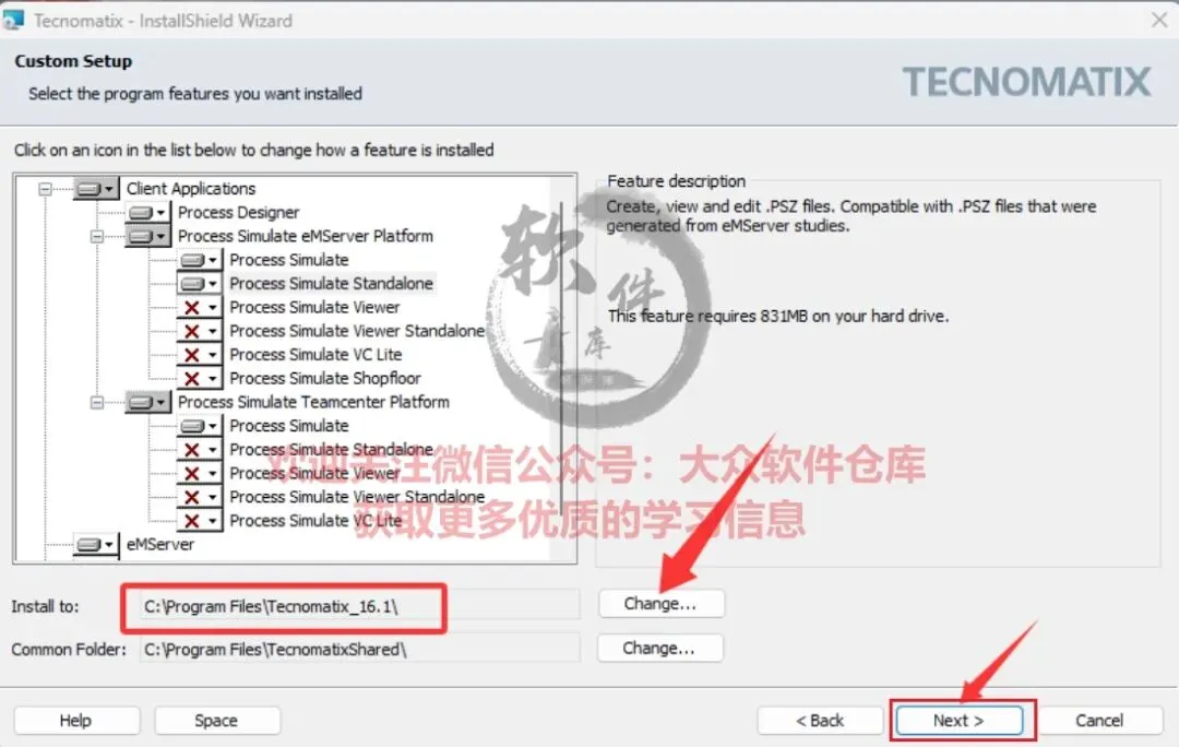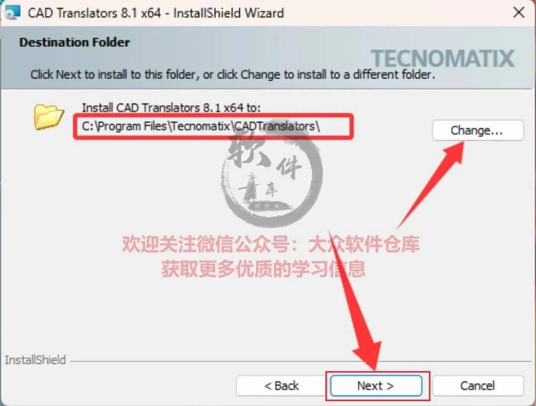 45.点击Change可以修改软件安装路径,点击Next。