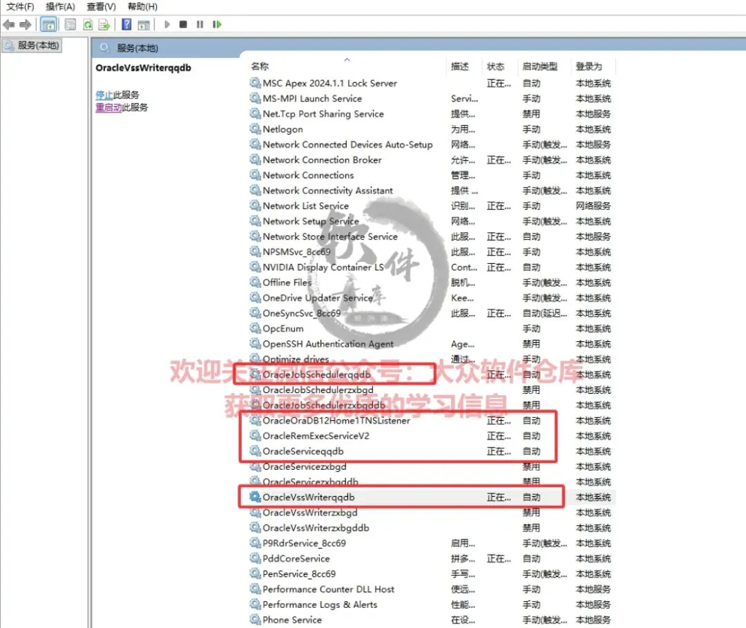 60.将所有oracle开头的服务更改为自动,并重新启动。