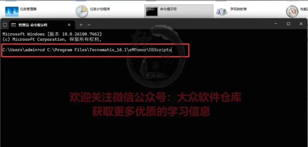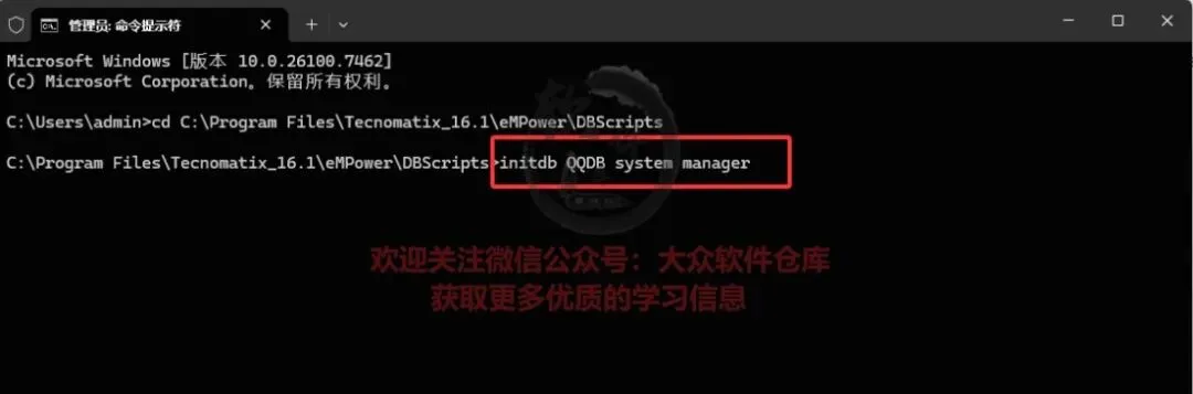 61.开启监听。(1)创建数据库实例。管理员身份运行命令提示符,输入cd +initDB.bat文件路径(安装位置的eMPower——DBScripts下)注意cd后有空格。参考路径:cd C:\Program Files\Tecnomatix_2408\eMPower\DBScripts
