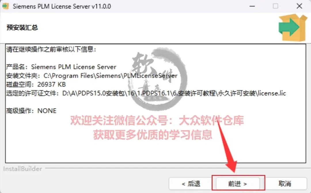 79.选择第75步修改好的license.lic文件,点击前进;