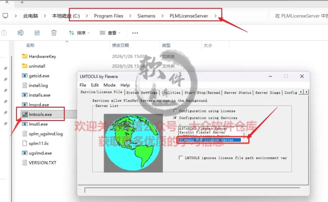 83.打开刚刚的PLMLicenseServer安装文件夹(78步设置的位置),右键以管理员身份运行lmtools程序;