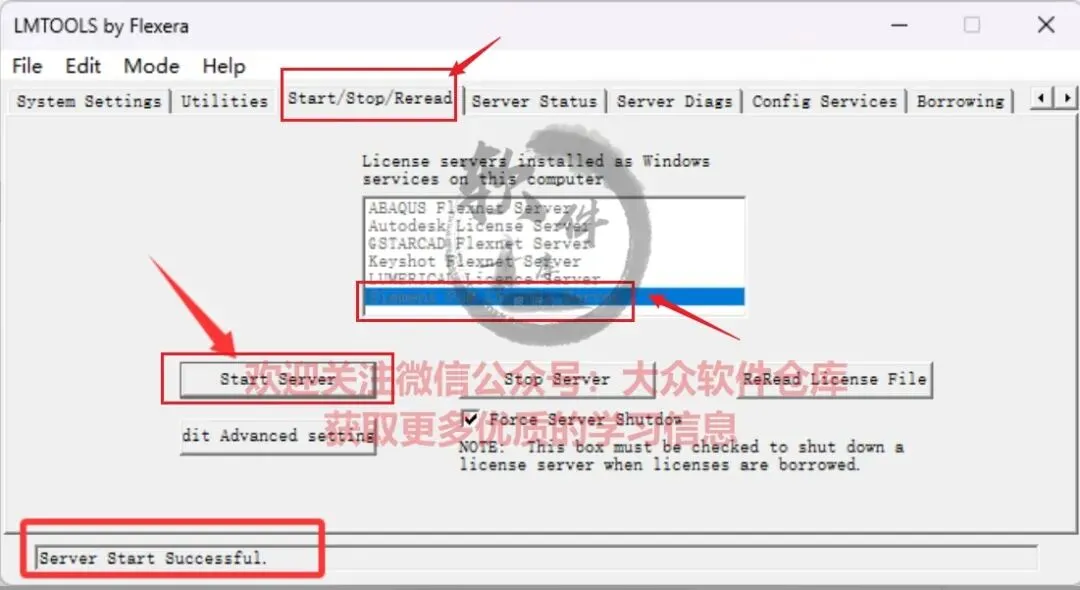 85.点击上方的Start/Stop/Reread,选择Siemens PLM License Server,点击Start Server。等待下方启动成功;