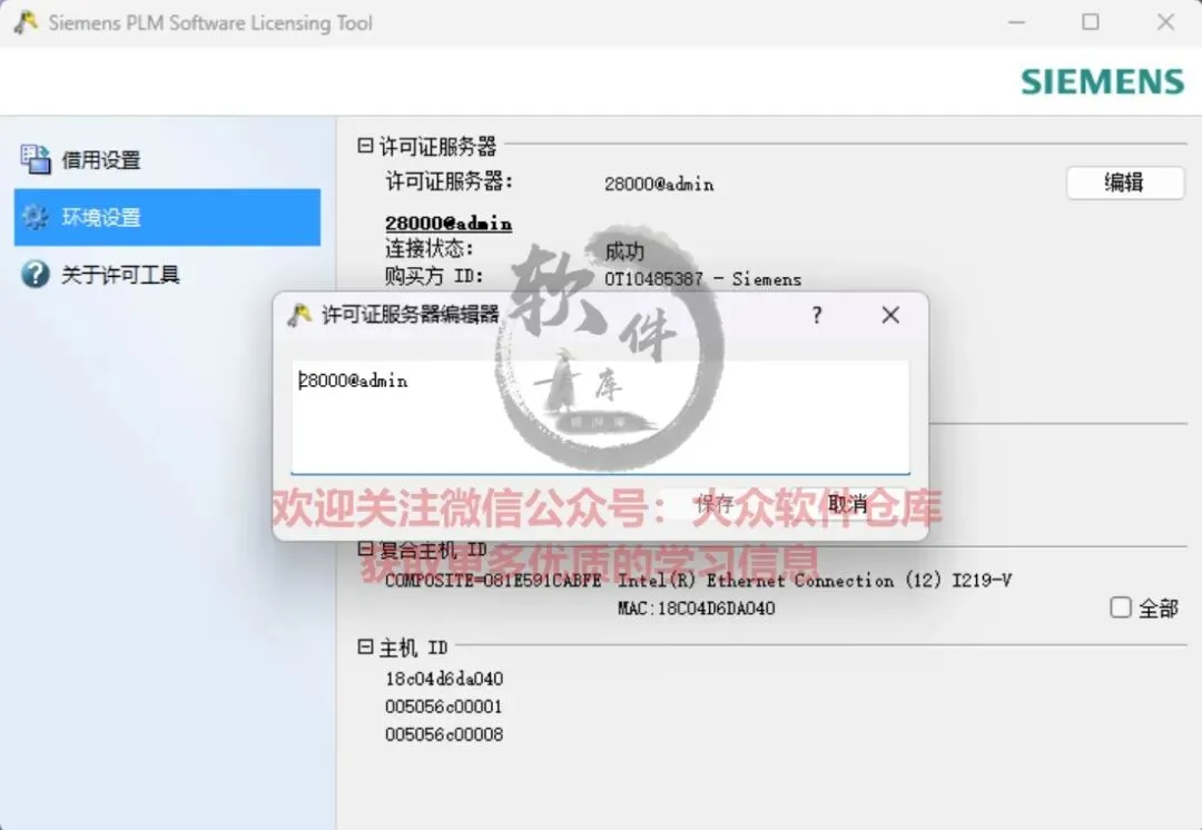 87.许可证服务器编辑器,输入 28000@计算机名。