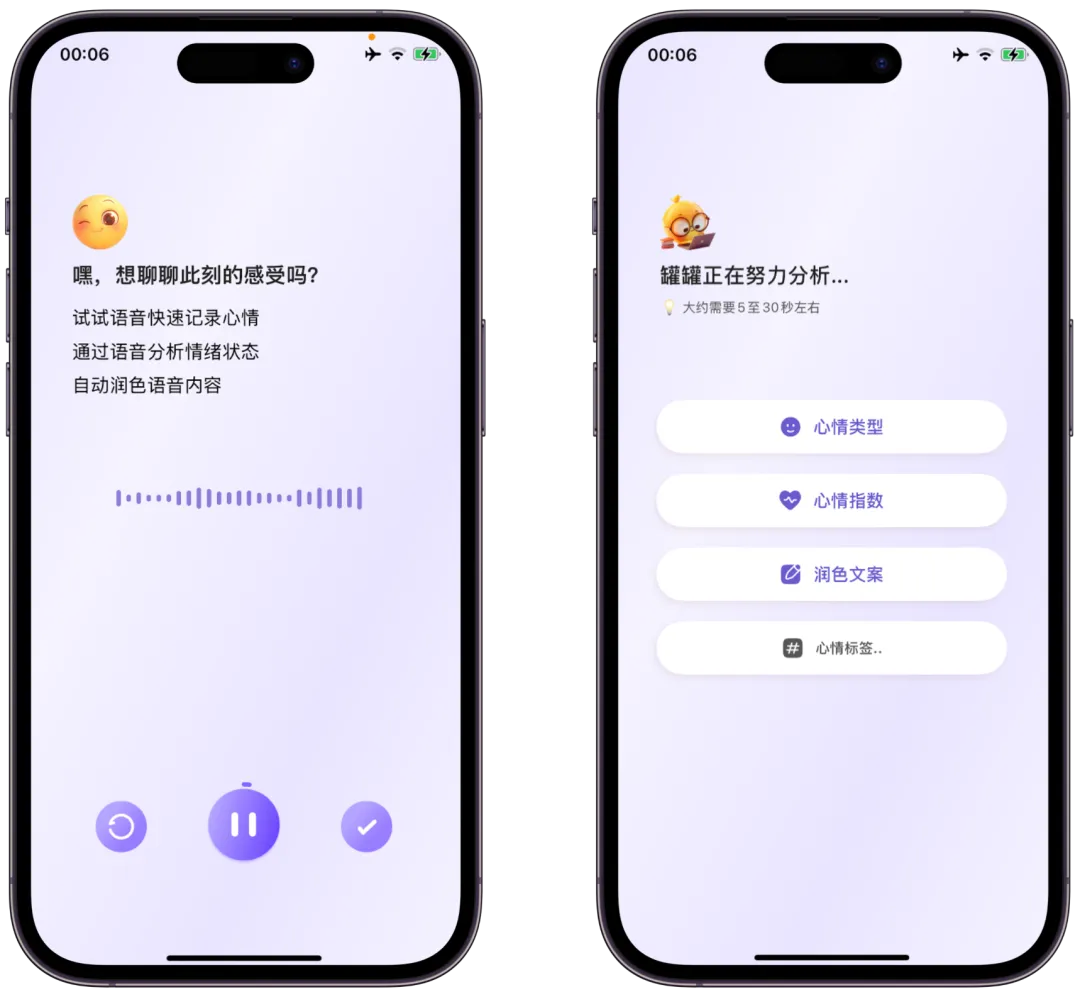 心情罐罐支持语音记录,把想说的话直接说出来,系统会识别情绪状态,并对文字进行简单整理,让记录更清晰。