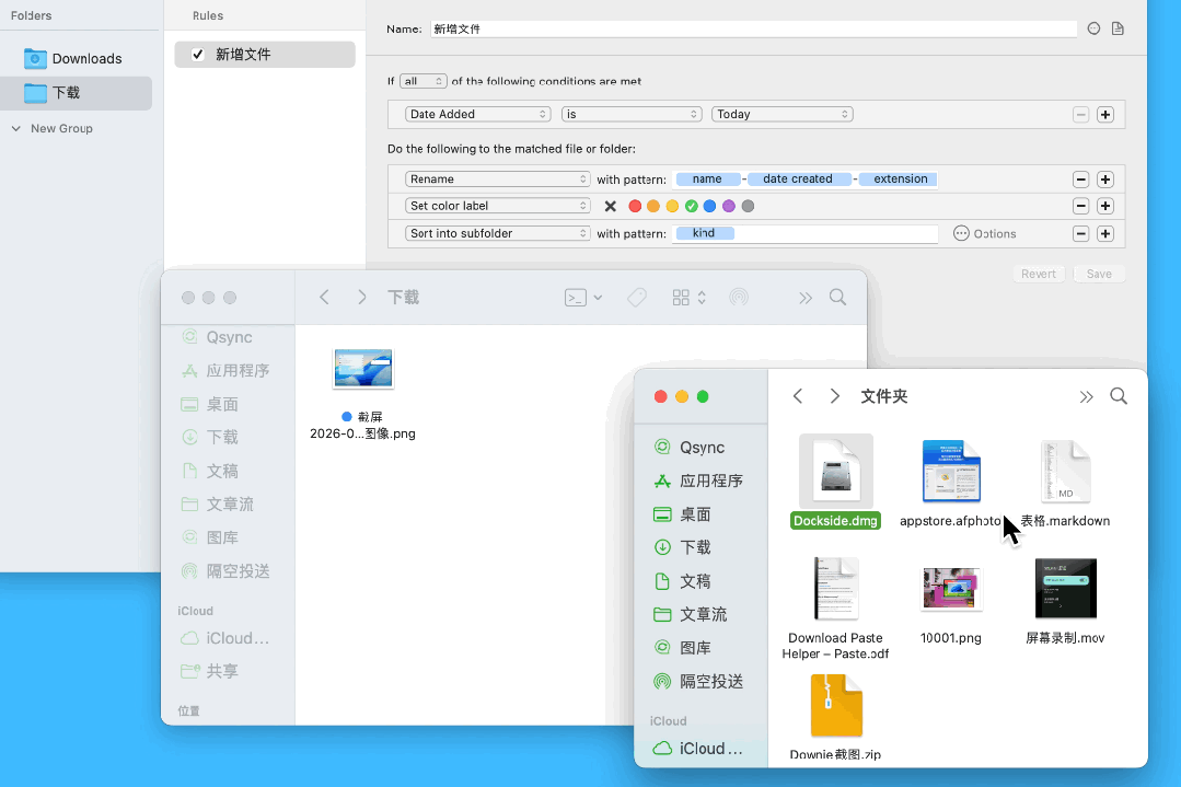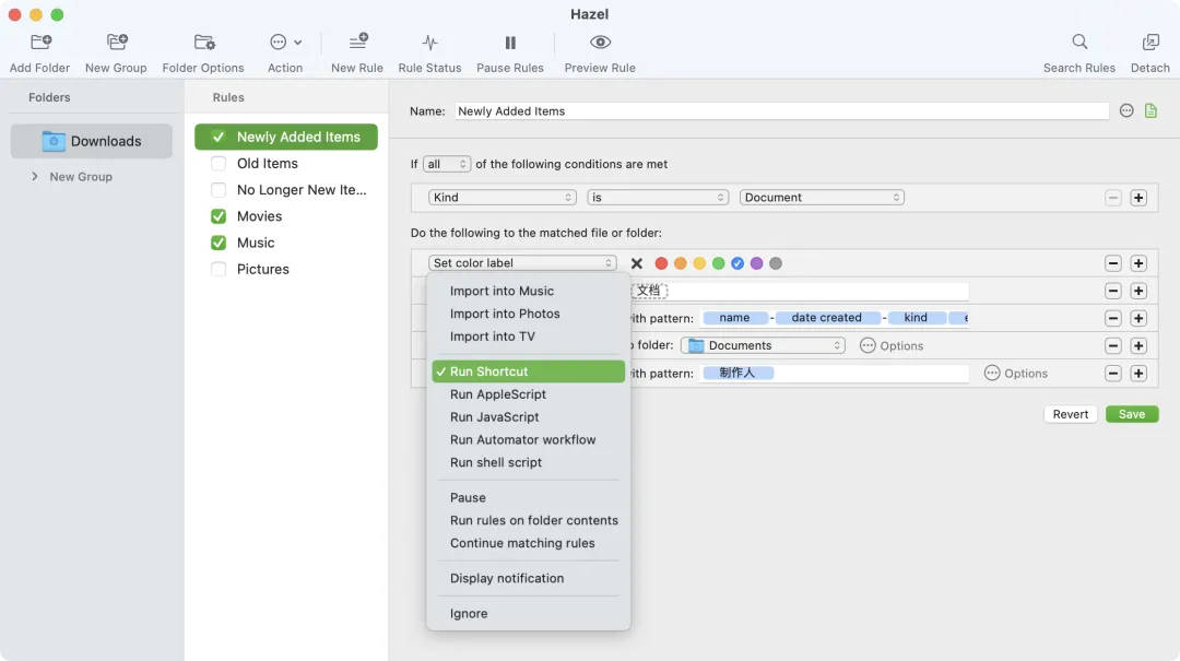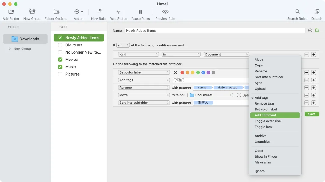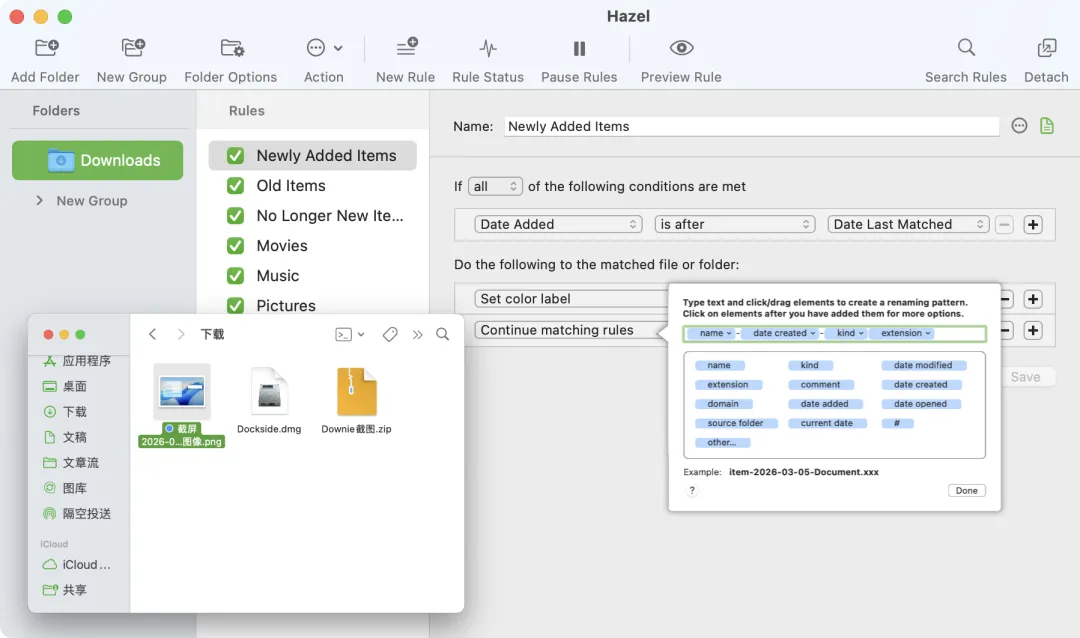 在满足条件时,Hazel 可以自动移动文件、重命名、添加标签,让资料更有条理。