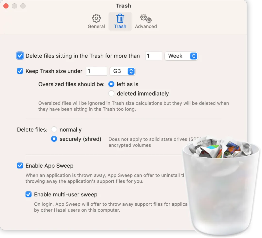 Hazel 可以根据时间或条件自动清理这些内容,减少无用文件占用空间。