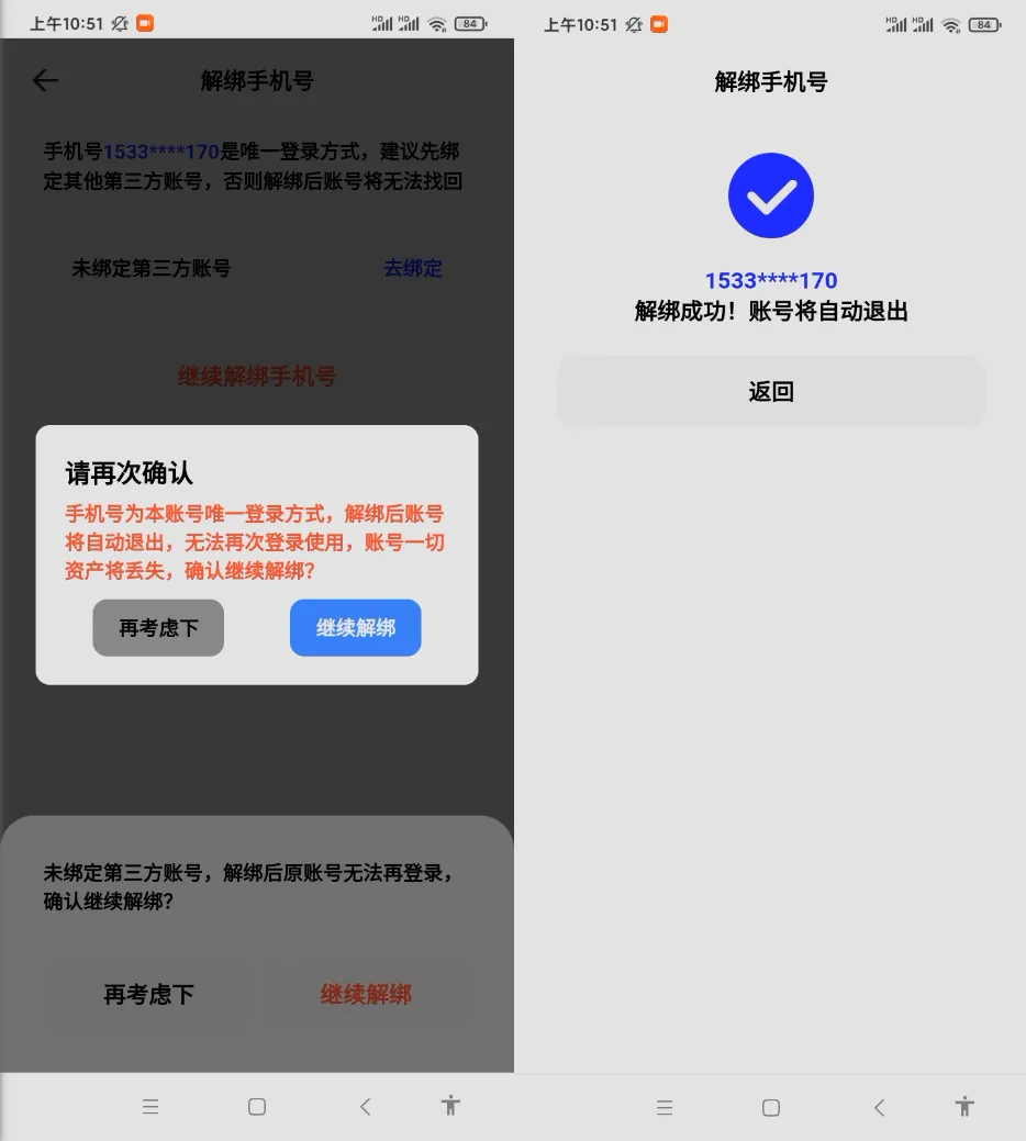 解绑过程会有多次确认,咱们继续解绑就行,直到把手机号解绑成功