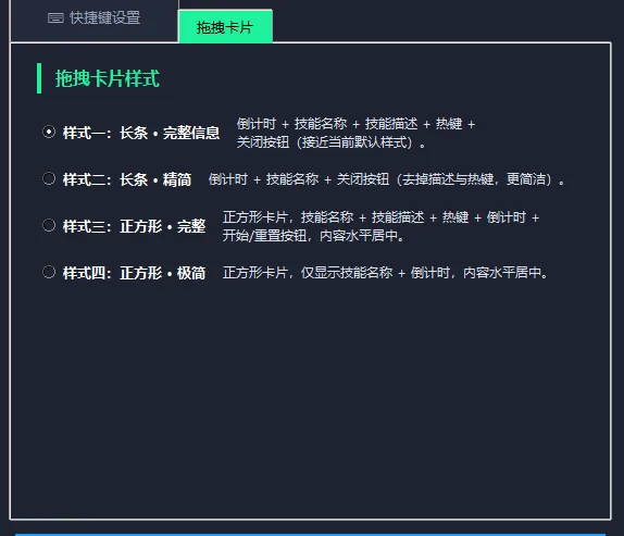 现在可以有4种不同风格的拖拽卡片可供选择,适合不同需求玩家,新手推荐完整版的,老手可以选择精简版