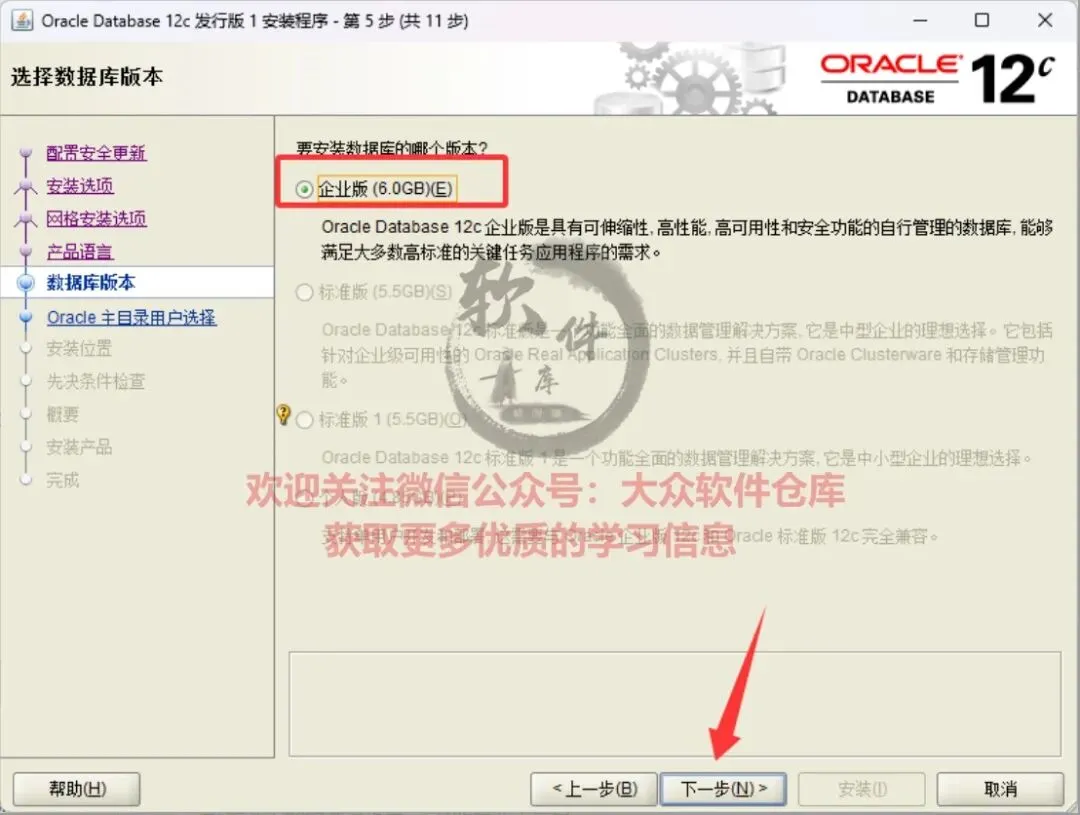 14.数据库版本选择企业版,然后点击下一步。