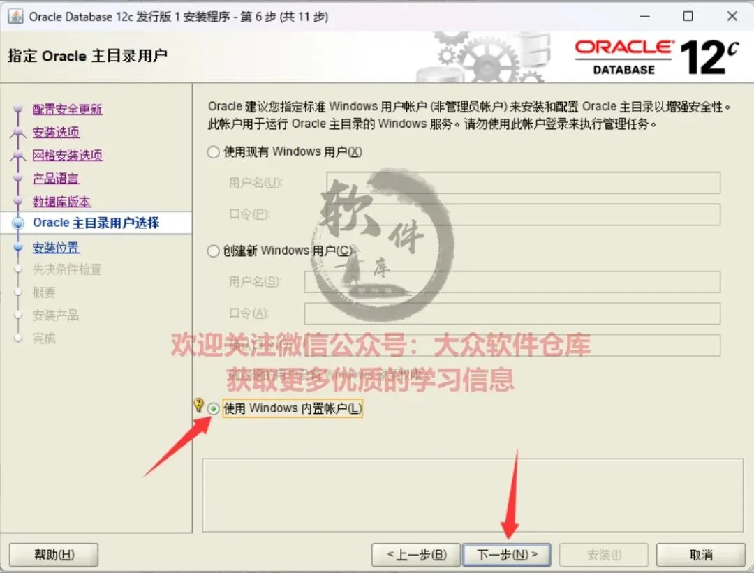 15.勾选使用Windows内置账户,然后的点击下一步。