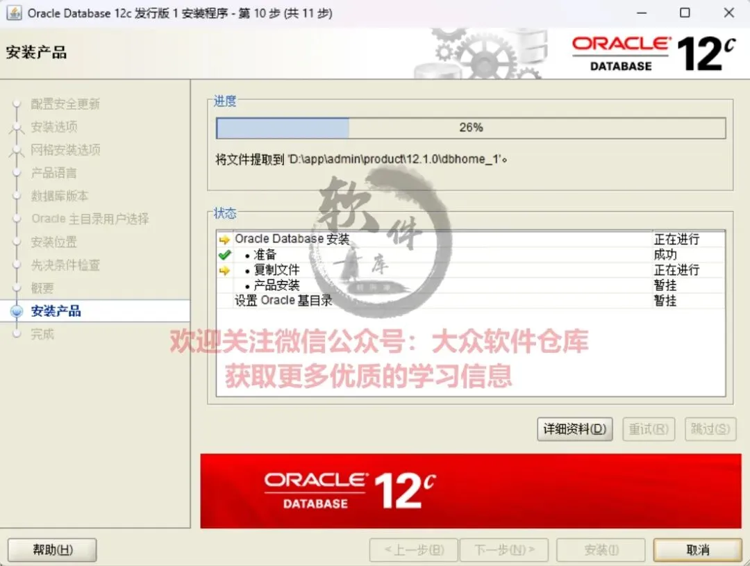 19.等待数据库安装。